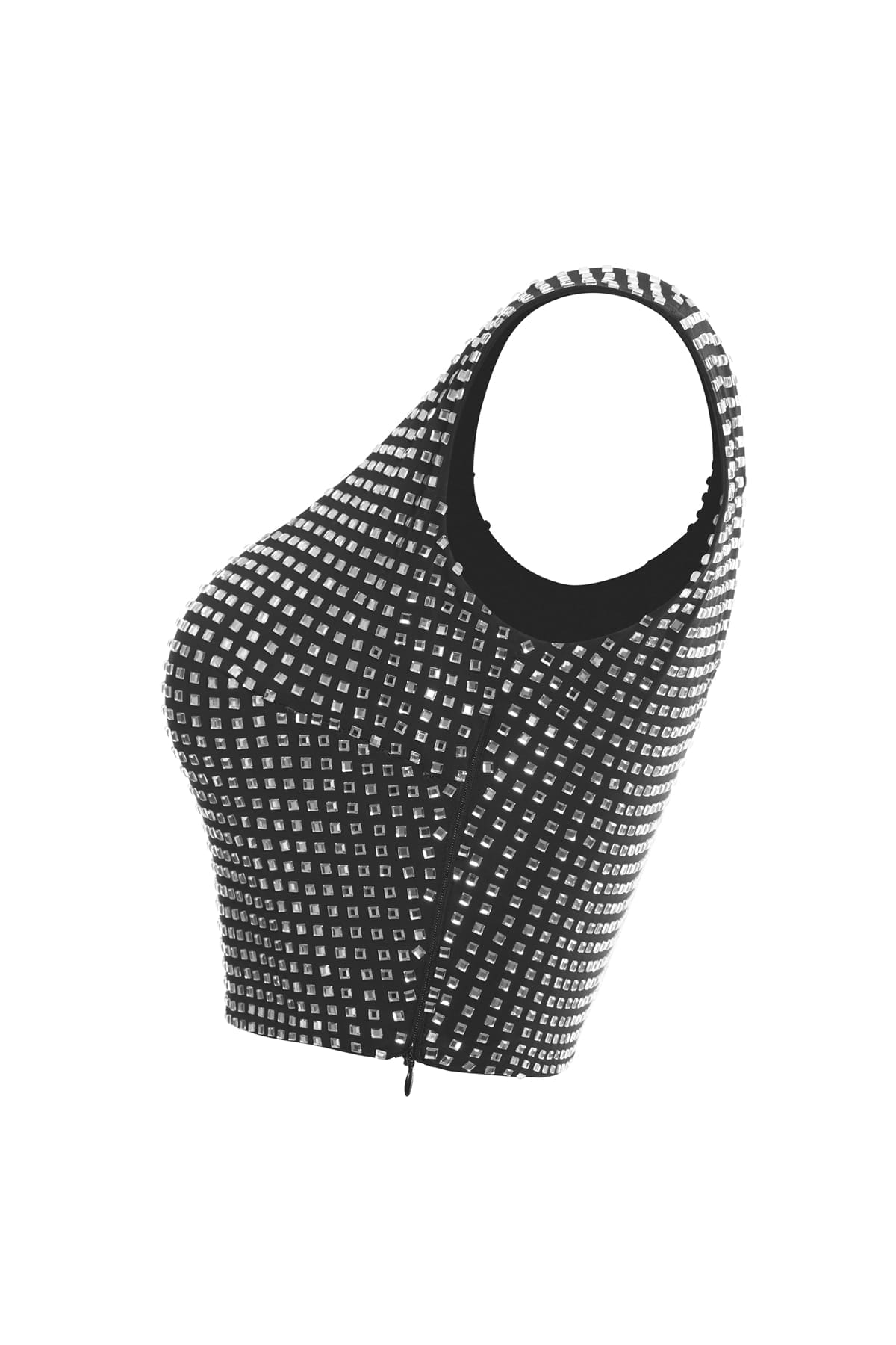 Make every entrance unforgettable with ZebraLines’ NeroCryst Silver Top, featuring luxurious hand-applied crystal embellishments for stunning visual impact. Crafted from premium stretch lycra, it comfortably contours your silhouette, while the discreet side zipper ensures a flawless, adjustable fit. Perfectly versatile, it effortlessly transitions from glamorous events to statement streetwear looks.