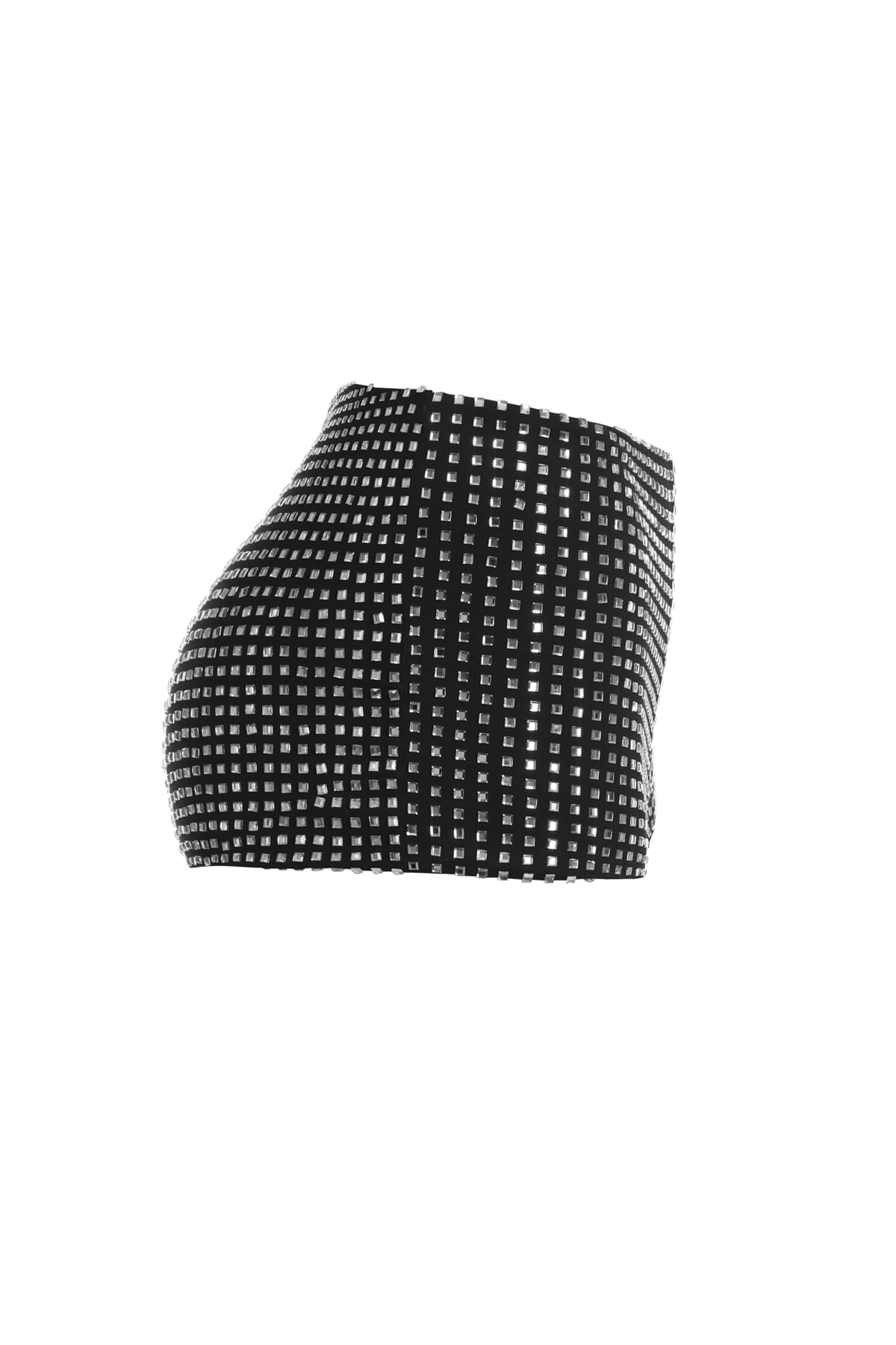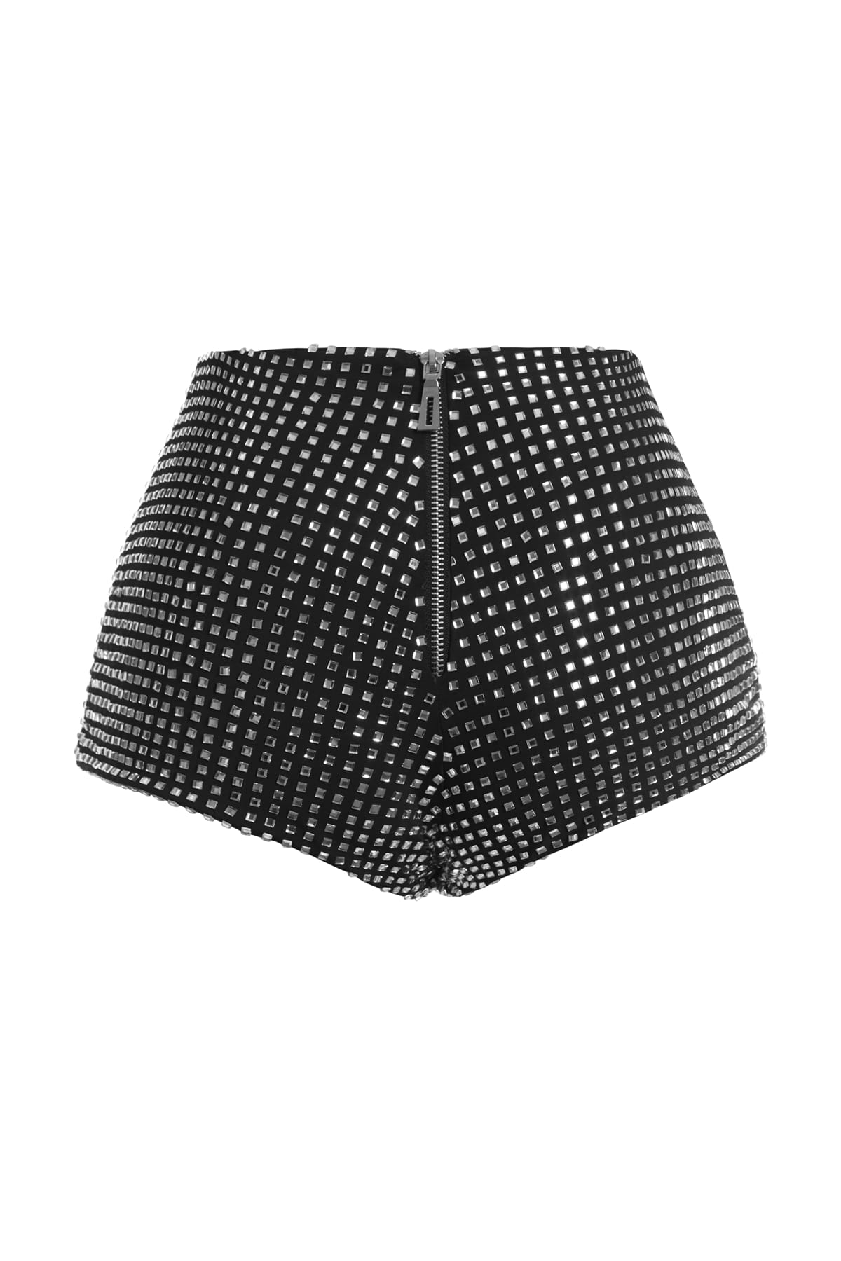 The NeroGlint Silver Shorts are the ultimate high-fashion piece, perfect for those who want to shine in any setting. With hand-applied embellishments, a flawless silhouette, and a metallic back zipper, this design merges luxury with modern edge.