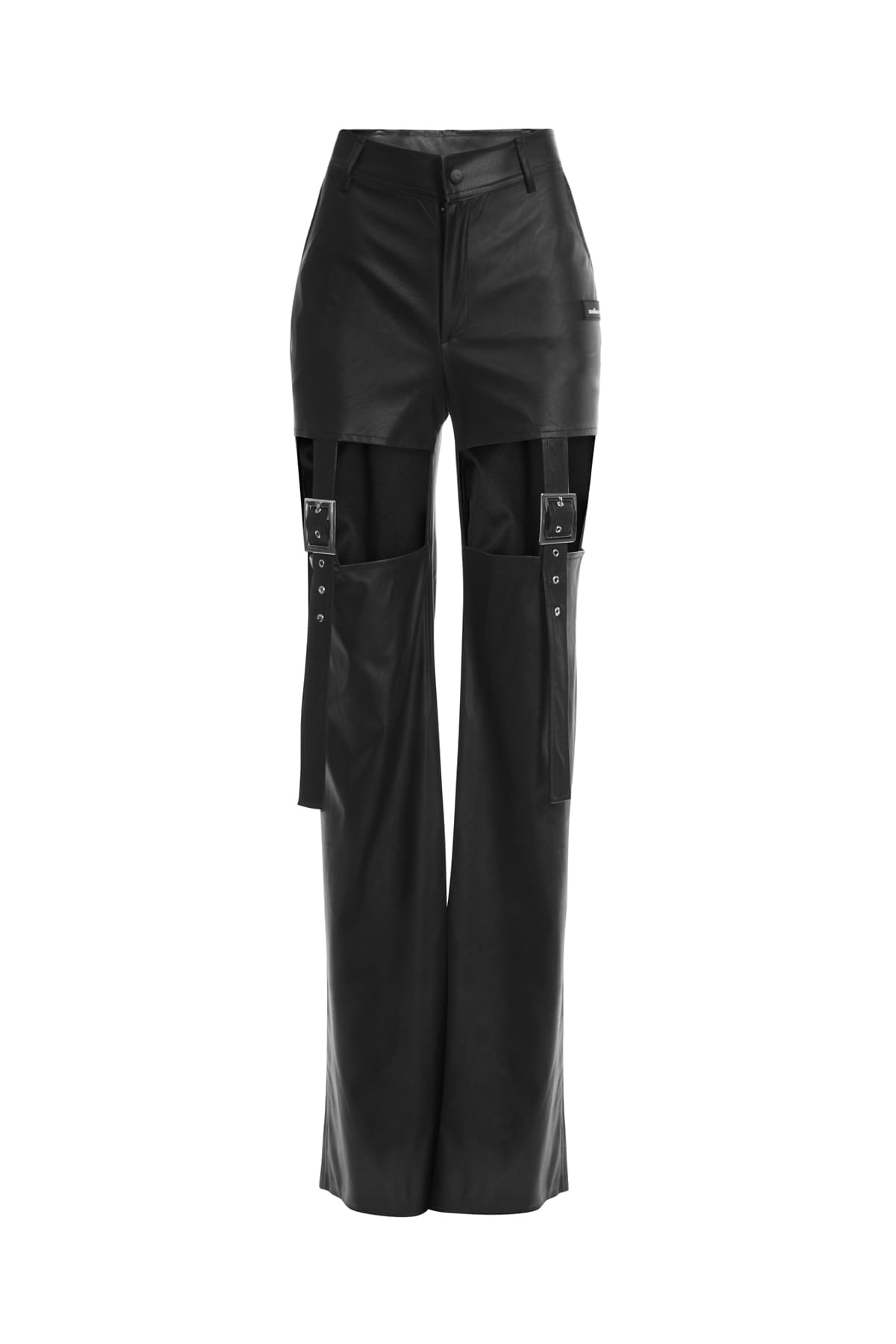 What makes StrapX Black Pants truly special are the bold cutouts at the thighs, creating a striking sculptural effect, combined with functional silver buckles that not only complement the futuristic aesthetic but also allow for an adjustable fit.